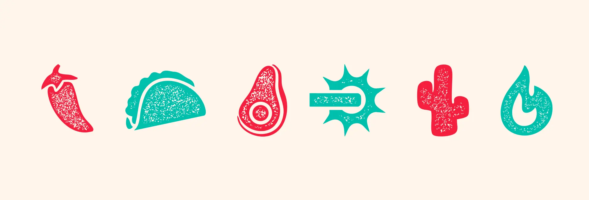 The red and teal color palette balances appetite appeal and modern vibrancy, nodding to both Mexican design traditions and the cultural influence of San Antonio’s fiesta colors.